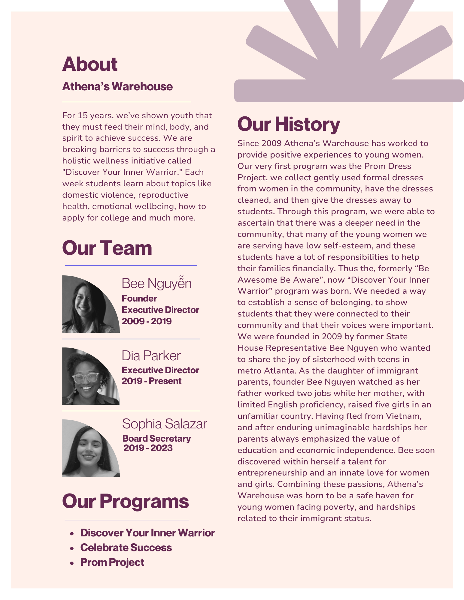 As a high school senior she recounted her time with Athena's Warehouse: